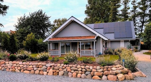 Die separate Maisonette Ferienwohnung hat einen einen Eingang. Vor dem Eingang befindet sich die überdachte Holzterrasse mit Tisch und Stühlen. Im EG befindet sich das Wohzimmer, Küche und Bad Im OG ist das geräumige Schlafzimmer und das Ankleidezimmer. Alle Fenster sind mit innen liegenden Plisses - im Schlafzimmer abdunkelnd. Die zu öffnenden Fenster besitzen Insektenschutz. ( Ganz wichtig auf Rügen ) Alle Fenster im EG haben elektrische Rollladen und Plissee. Im Erdgeschoss ist eine Fußbodenheizung und Fliesenbelag in schöner Holzoptik. Der Belag im Schlafzimmer ist aus Linoleum in Holzoptik. Individuelle Schreinerarbeiten Natürliche Materialien Eichen- und Buchenholz geölt, Schafswollfilz, Leder. Die besonderen Highlights: Maisonette Wohnung mit eigenem Eingang Eigene Terrasse zur Ostseite Allergiker freundlich ausgestattete Wohnung Wallbox Lademöglichkeit gegen Gebühr. 2 x Flach-TV (WZ + SZ ) Moderne vollausgestattete Landhausküche. Bodenebene Dusche. Betteninlays aus 100 % Biobaumwolle mit pflegeleichter Füllung. Bad-Handtücher in Bio-Qualität. Großes, massives, geöltes Buche King Size Bett 200 x 200 cm. Die Matratzen können gewendet werden von mittelfest auf fest. Begehbarer Kleiderschrank. Abstellraum abschließbar für Fahrräder mit Lademöglichkeit. Die Dachfenster sind nicht zum öffnen.